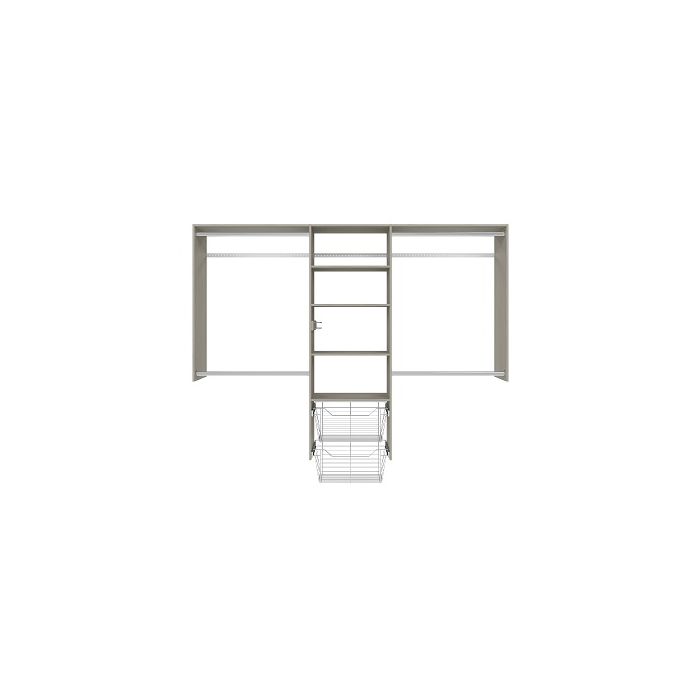 - Organize All the Essentials. Adjustable shelving provides convenient storage for shoes, containers, or folded items. Two sliding chrome baskets will hold shoes, hats, and miscellaneous loose items. Includes sliding, 7-hook rack to hang keys, sunglasses, and other items.