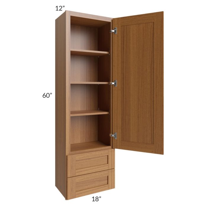 Artisan Walnut Shaker 18x60 Wall Cabinet with 2 Drawers