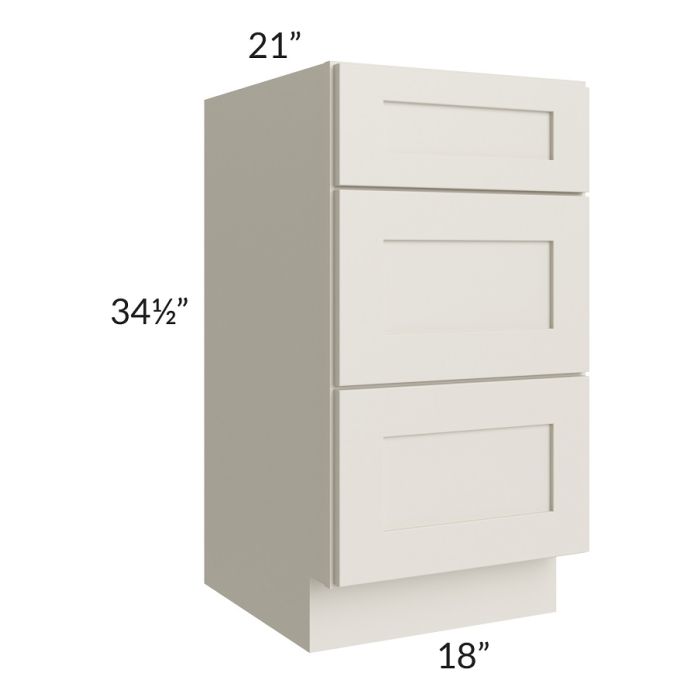 Asheville Cloud Shaker 18" 3-Drawer Vanity Base Cabinet