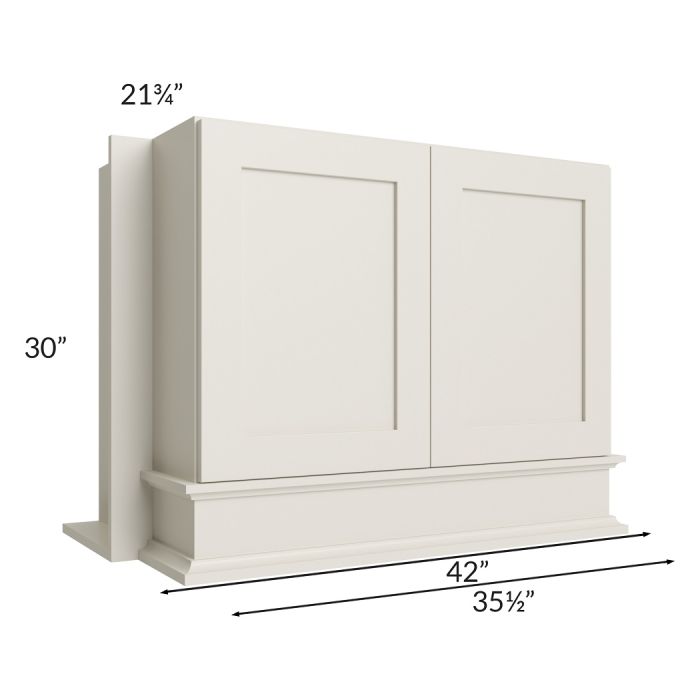 Wood hood that will be 42" wide when 3" fillers are installed on either side of the hood. Fillers will be included and can be cut down to a minimum of 1" on each side.