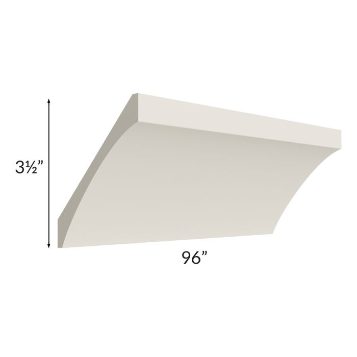 Large curved crown molding that will have a height of 3-1/2" once installed and will stick out 2-7/8" from the cabinet.