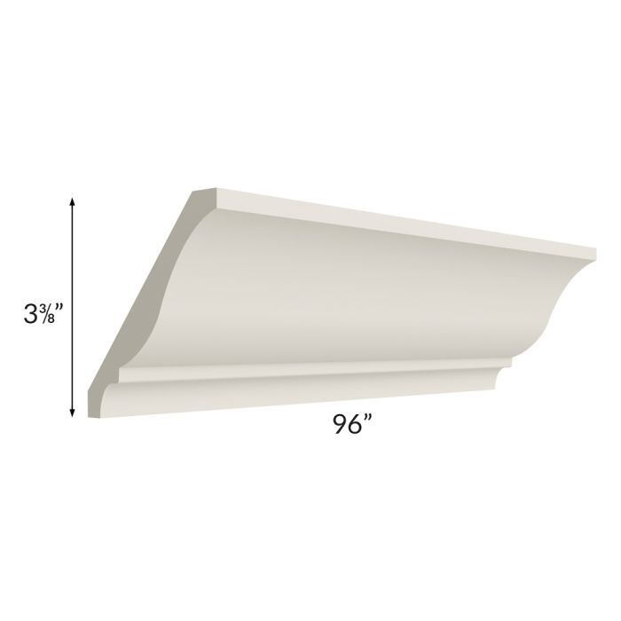 Large curved crown molding that will have a height of 3-3/8" once installed and will stick out 2-7/8" from the cabinet.