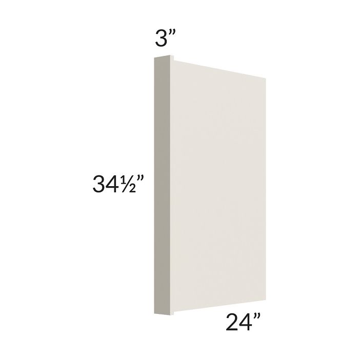 Dishwasher end panel with a 3" wide filler on the front. Can be installed on the left or right. Commonly used next to an exposed appliance, like a dishwasher.