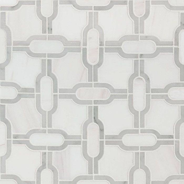Bianco Gridwork Tile features a classic white marble background accented by a sophisticated intersecting pattern of dove gray marble for a distinctive look that sets your project apart from the rest. Perfect for a variety of decorative styles from classic to coastal, the soft neutral tones of this polished tile complement a variety of color schemes. Perfect for use as a backsplash tile in bathrooms, kitchens, laundry rooms, and other spaces, Bianco Gridwork is suitable for a wide range of applications including floors, backsplashes, vanity walls, shower surrounds, countertops, and more. Durable, elegant, and easy to maintain, this genuine marble tile is also Greenguard Indoor Air Quality Certified®.