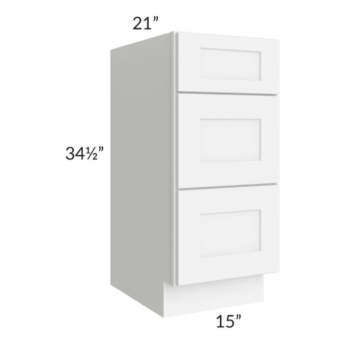 Brilliant White Shaker 15" 3-Drawer Vanity Base Cabinet