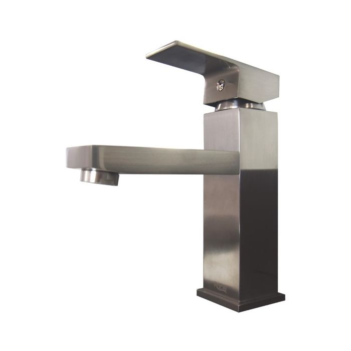 Brushed nickel single handle bathroom faucet.