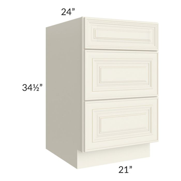 Description / Cambridge Antique White Glaze 21" 3-Drawer Base Cabinet