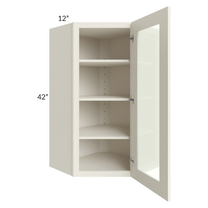 Description / Cambridge Antique White Glaze 24x42 Wall Diagonal Corner Cabinet (Prepped for Glass Doors)