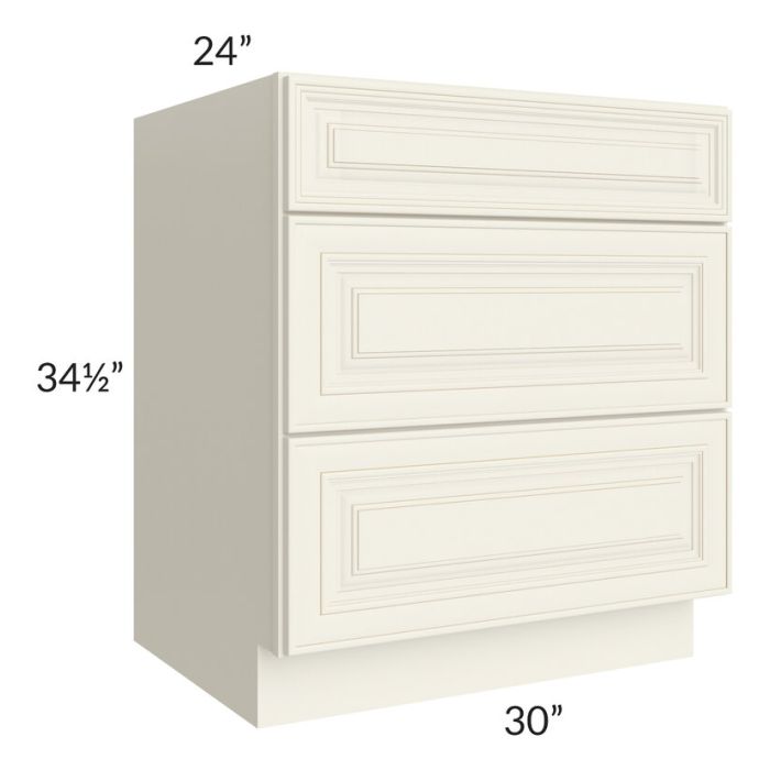 Cambridge Antique White Glaze 30" 3-Drawer Base Cabinet