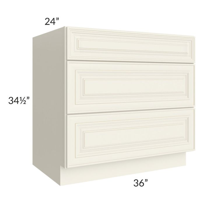 Cambridge Antique White Glaze 36" 3-Drawer Base Cabinet