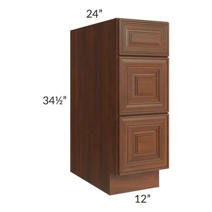 Description / Cambridge Saddle Glaze 12" 3-Drawer Base Cabinet