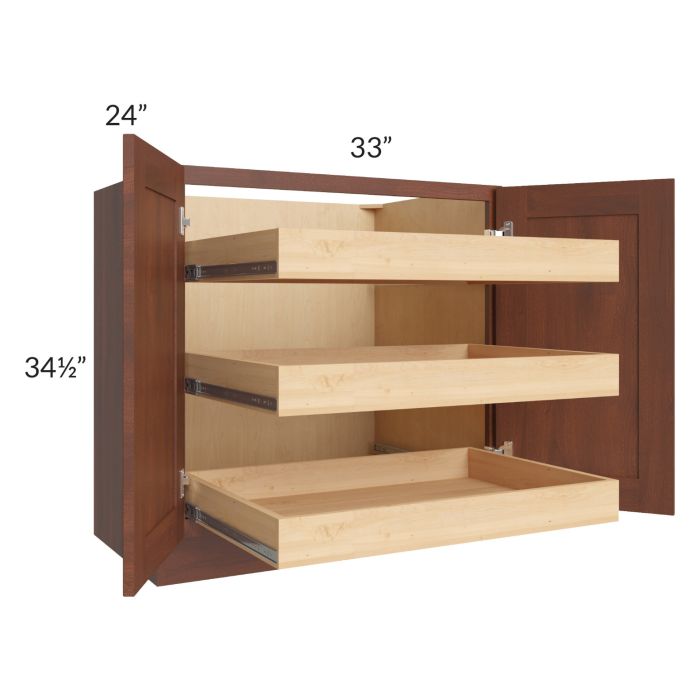 You're reviewing: Cambridge Saddle Glaze 33" Full Height Base Cabinet with 3 Rollout Trays - Low stock through April