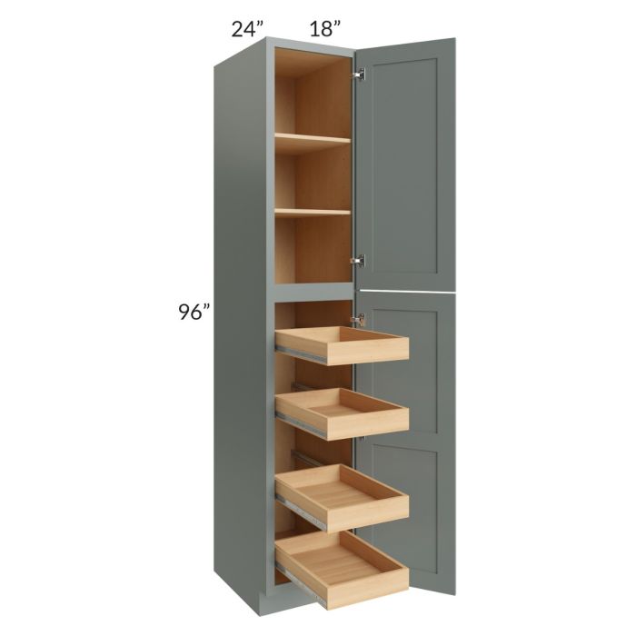 Catalina Meadow Green 18x96x24 Wall Pantry Cabinet with 4 Rollout Trays - Low stock through March