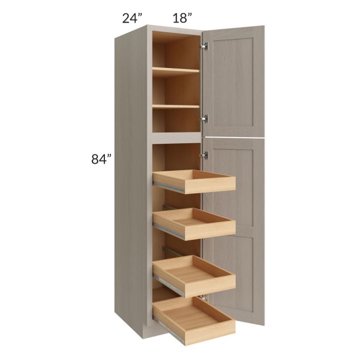 Description / Catalina Mist 18x84x24 Wall Pantry Cabinet with 4 Rollout Trays