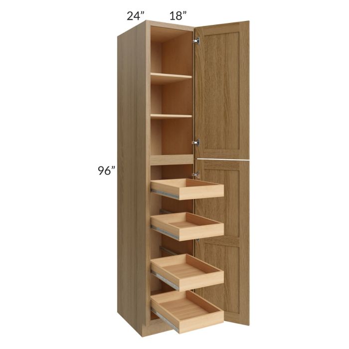 Catalina Toffee 18x96x24 Wall Pantry Cabinet with 4 Rollout Trays
