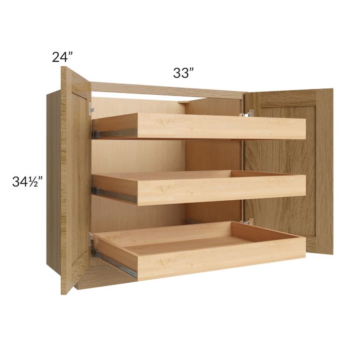 Catalina Toffee 33" Full Height Base Cabinet with 3 Rollout Trays