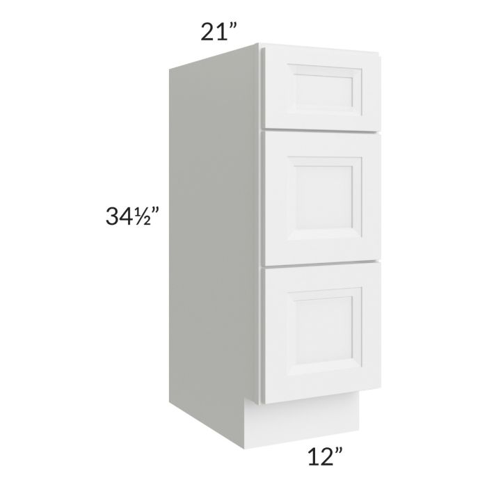 Catalina White 12" 3-Drawer Vanity Base Cabinet