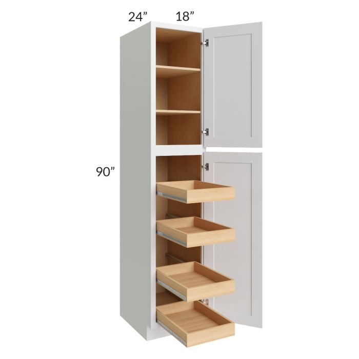 Catalina White 18x90x24 Wall Pantry Cabinet with 4 Rollout Trays