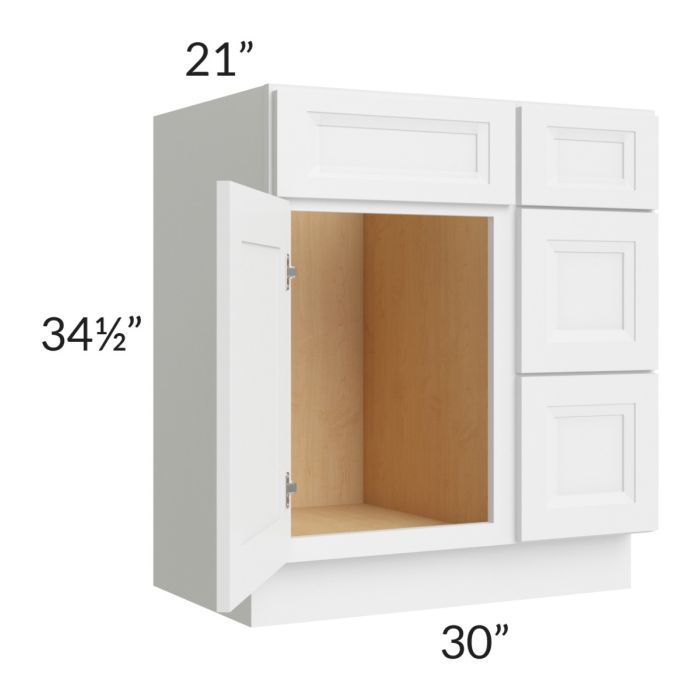 Catalina White 30" Vanity Base Cabinet (Drawers on Right)