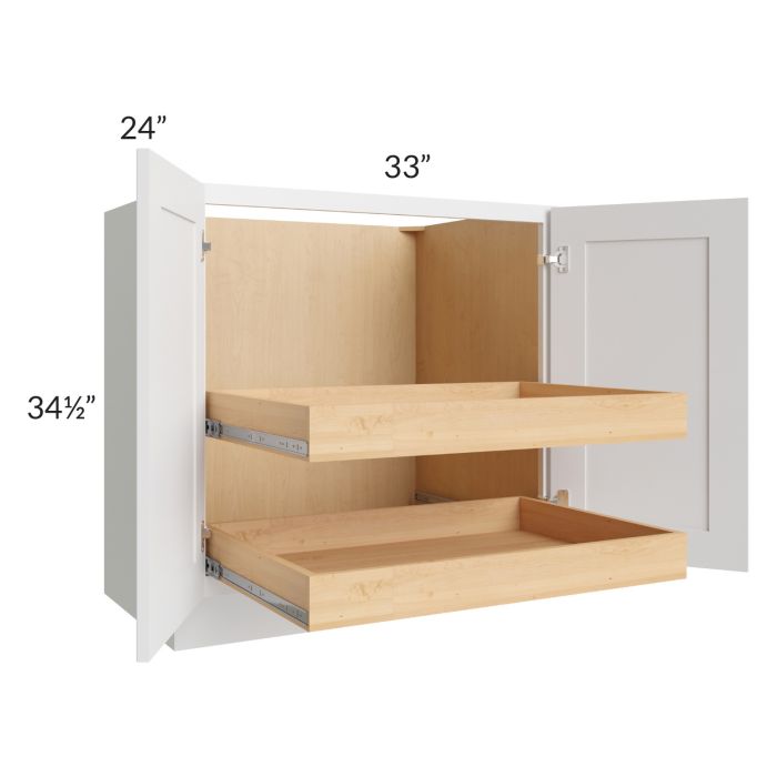 Catalina White 33" Full Height Base Cabinet with 2 Rollout Trays
