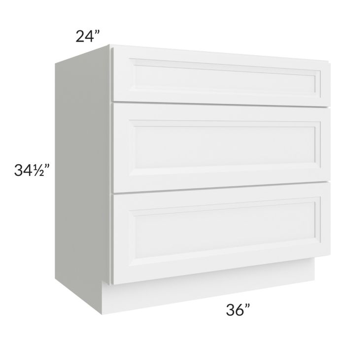 Catalina White 36" 3-Drawer Base Cabinet