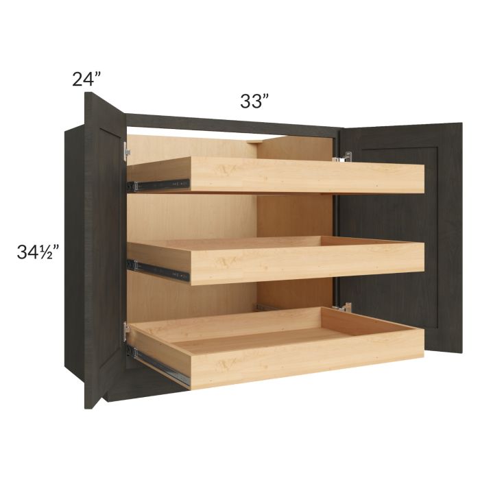 Charcoal Grey Shaker 33" Full Height Base Cabinet with 3 Rollout Trays