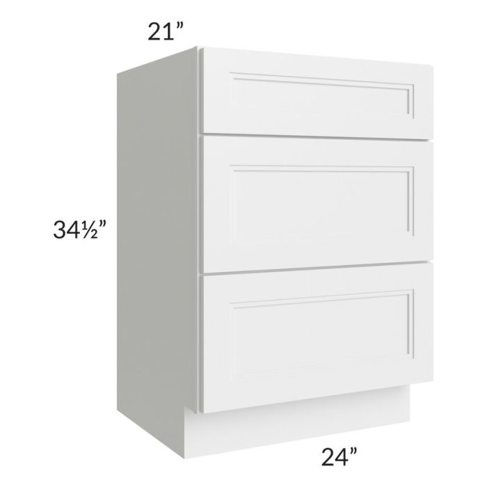 Description / Charlotte White 24" Vanity 3-Drawer Base Cabinet