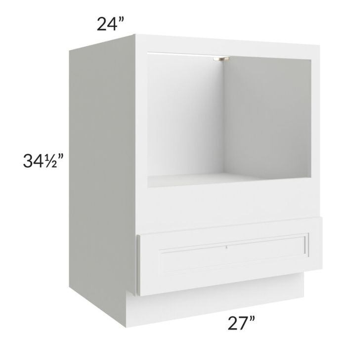Microwave base cabinet with a 24"W x 15-1/2"H opening on top and a drawer on bottom. The top opening will be finished to match the exterior of the cabinet.