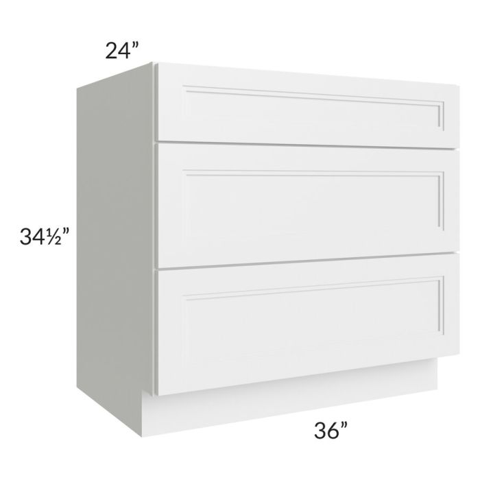 Description / Charlotte White 36" 3-Drawer Base Cabinet