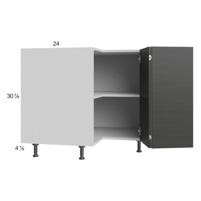 Easy reach corner cabinet with a bi-fold door that takes up 36" of wall space from the corner out, on each wall. This cabinet has 2 adjustable wood shelves. Finished end panels are required for exposed sides.