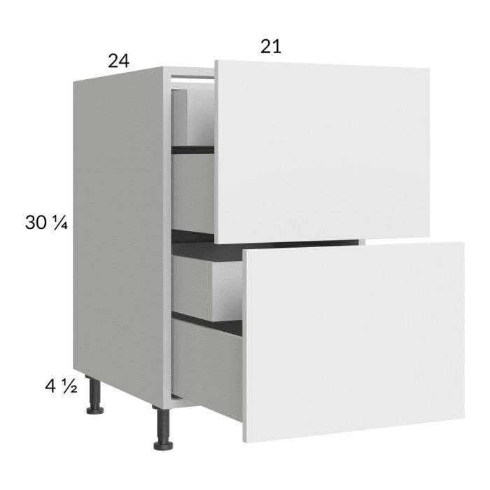 Euro Gloss White 21" 2-Drawer Base Cabinet with 2 Inner Drawers