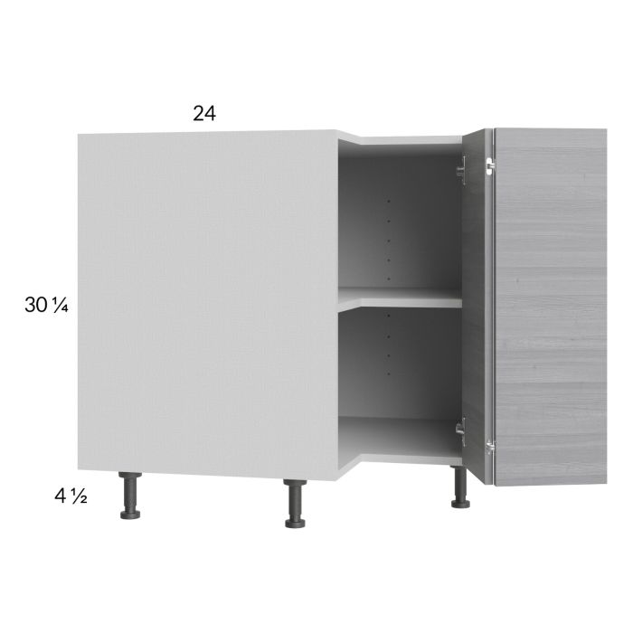 Easy reach corner cabinet with a bi-fold door that takes up 33" of wall space from the corner out, on each wall. This cabinet has 1 adjustable wood shelf.