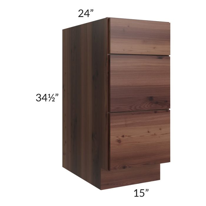 Farmhouse Walnut Shaker 15" 3-Drawer Base Cabinet