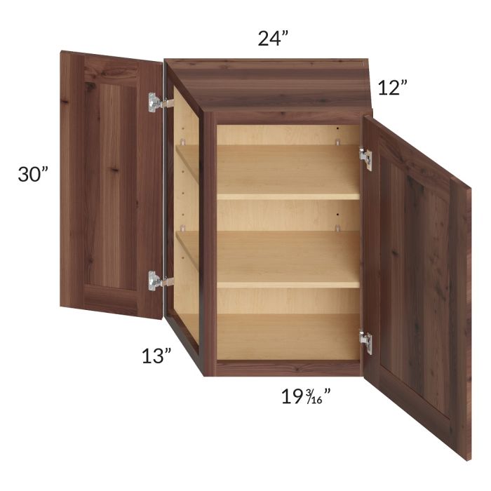 Farmhouse Walnut Shaker 24x30 Wall End Angle Cabinet