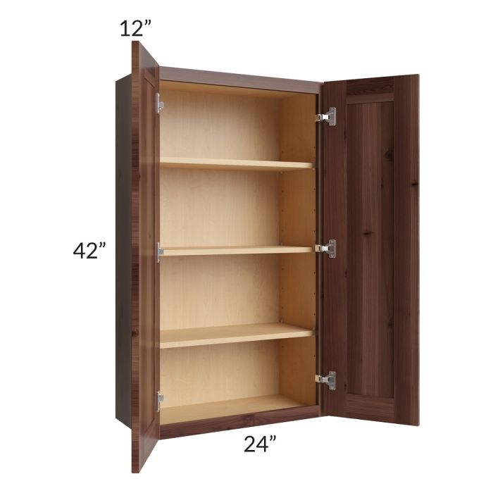 Farmhouse Walnut Shaker 24x42 Wall Cabinet