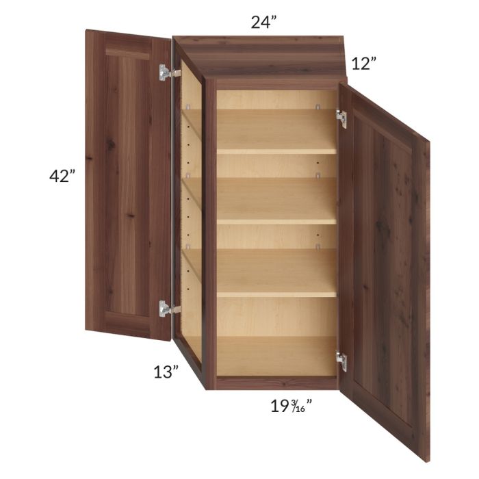 Farmhouse Walnut Shaker 24x42 Wall End Angle Cabinet - Out of stock through mid April