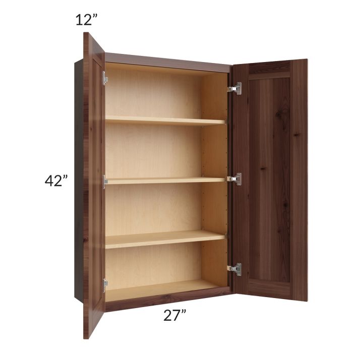 Farmhouse Walnut Shaker 27x42 Wall Cabinet