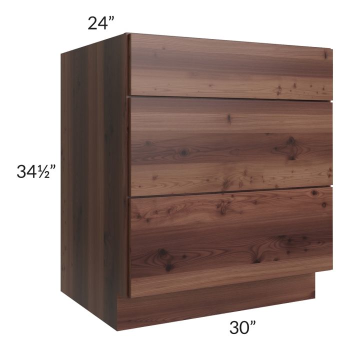 Farmhouse Walnut Shaker 30" 3-Drawer Base Cabinet