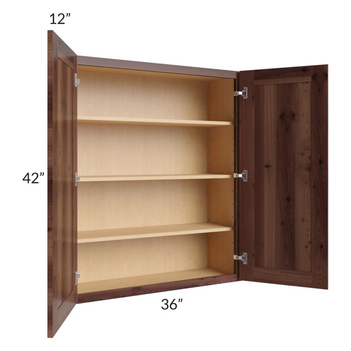 Description / Farmhouse Walnut Shaker 36x42 Wall Cabinet