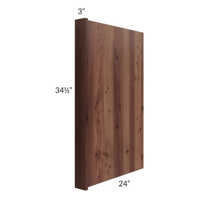 Base end panel with a 3" stile on the front. Panel is 1/2" thick. *please note this panel will not have knotted sides to match the cabinet fronts, please use the 24x35 End Panel over this appliance end panel to have the knotted details*