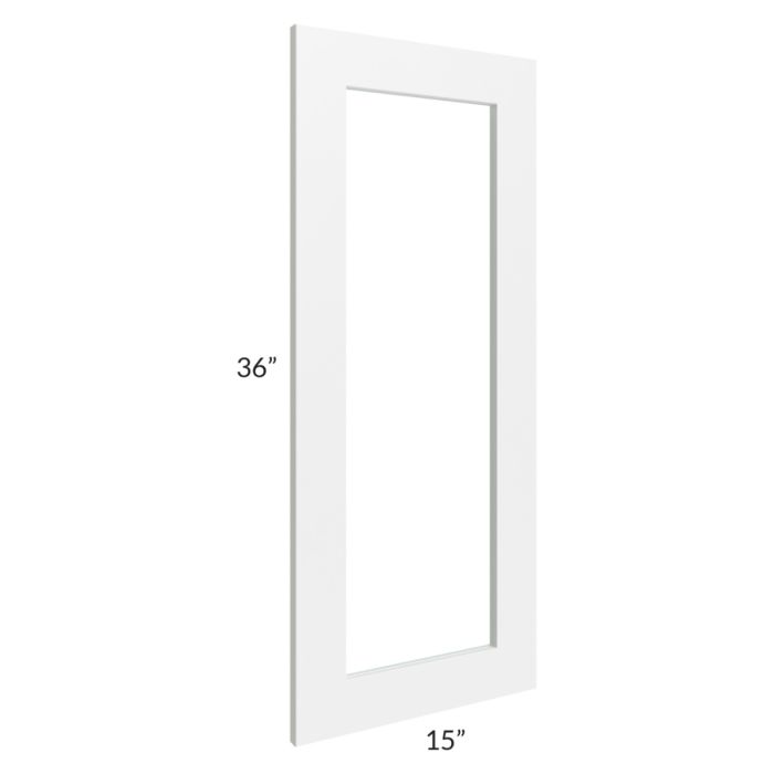 Glass door for a 15"W x 36"H wall cabinet that will match the door style of the cabinet and has plain glass. The glass is also included.