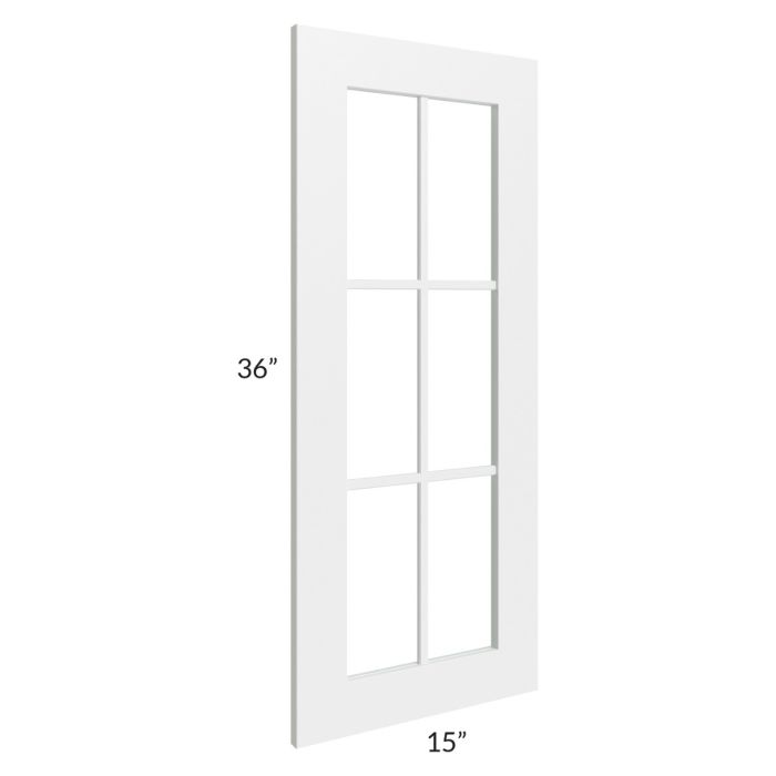 Mullion glass door for a 15"W x 36"H wall cabinet that will match the door style of the cabinet and has 6 panes. The glass is also included.
