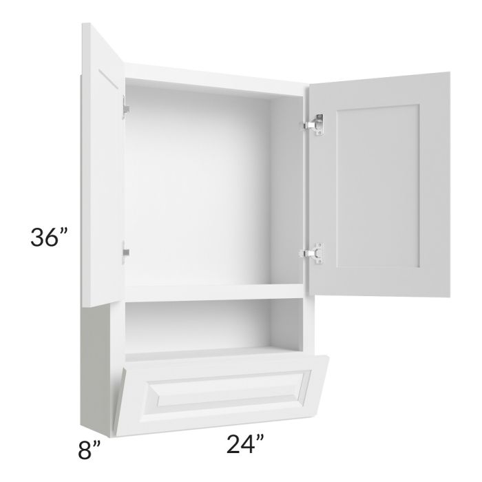 Toilet topper cabinet with 2 doors and 1 tilt-out drawer on bottom. There will be a finished opening between the doors and tilt-out drawer that is 20-7/8"W x 5-3/4"H.