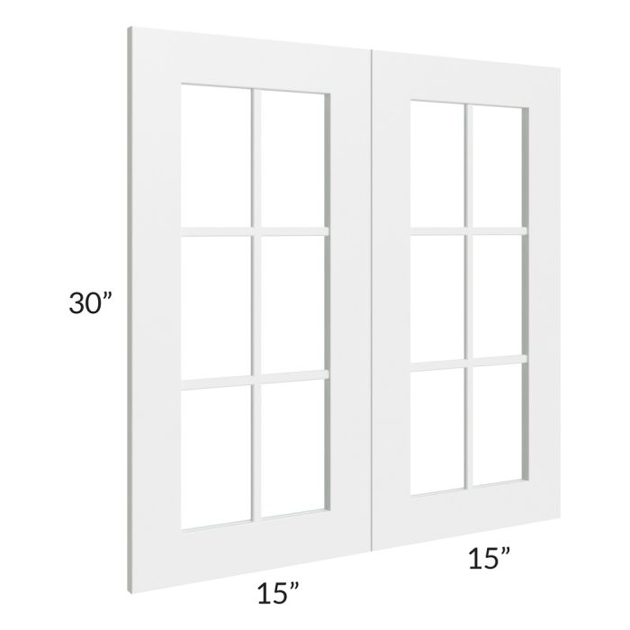 Set of mullion glass doors for a 30"W x 30"H wall cabinet that will match the door style of the cabinet and has 6 panes. The glass is also included.