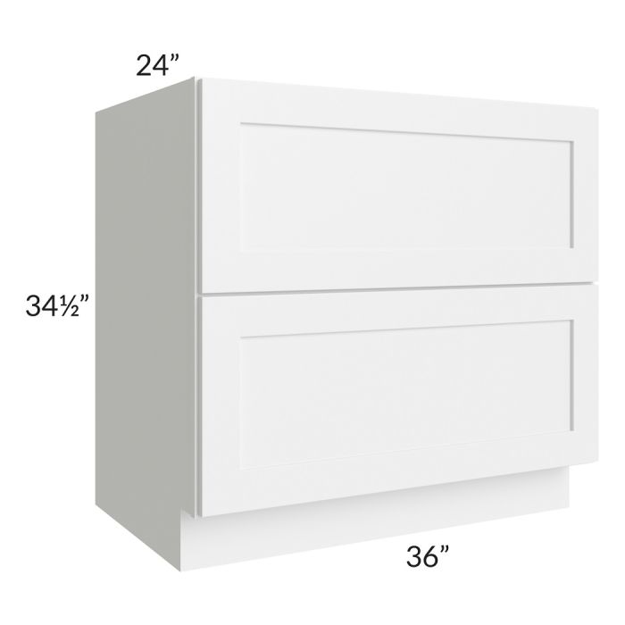 Frosted White Shaker 36" 2-Drawer Base Cabinet