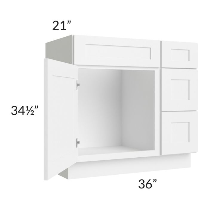 Frosted White Shaker 36" Vanity Sink Base Cabinet (Drawers on Right)
