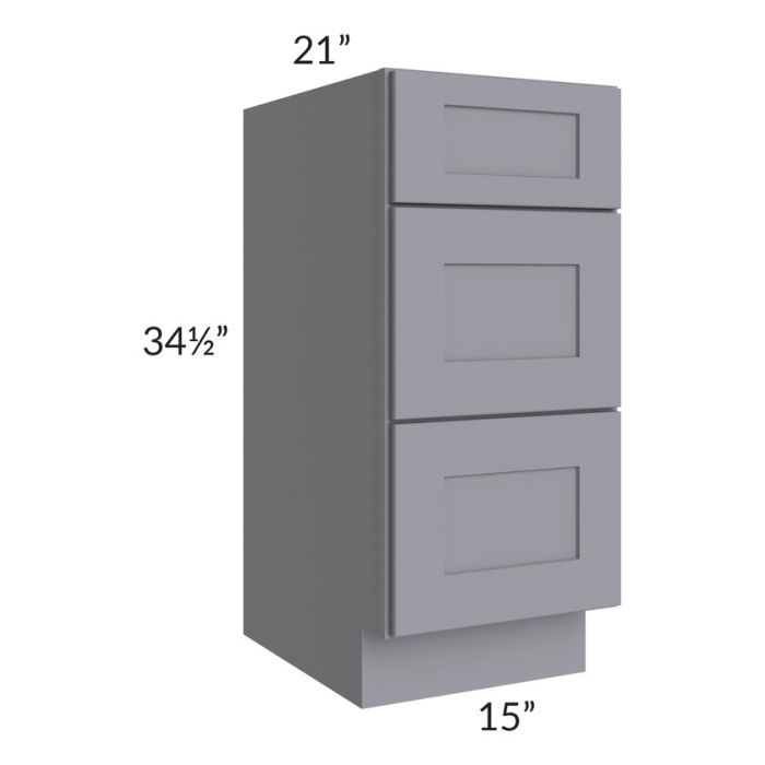Graphite Grey Shaker 15" 3-Drawer Vanity Base Cabinet