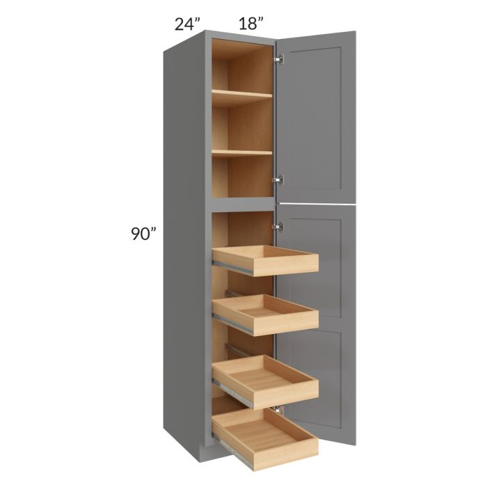 Graphite Grey Shaker 18x90x24 Wall Pantry Cabinet with 4 Rollout Trays