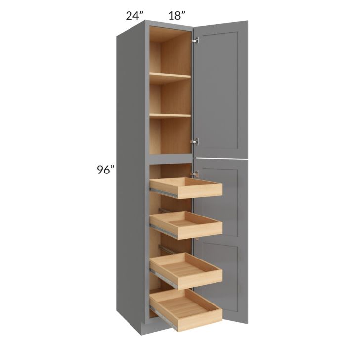 Graphite Grey Shaker 18x96x24 Wall Pantry Cabinet with 4 Rollout Trays