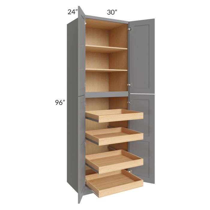 Graphite Grey Shaker 30x96x24 Wall Pantry Cabinet with 4 Rollout Trays